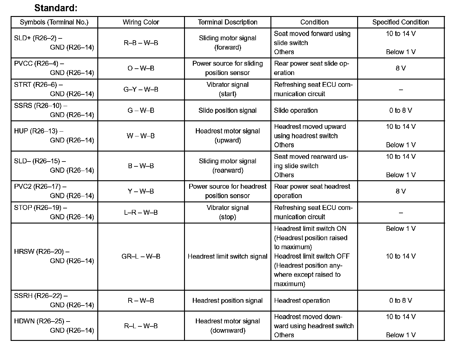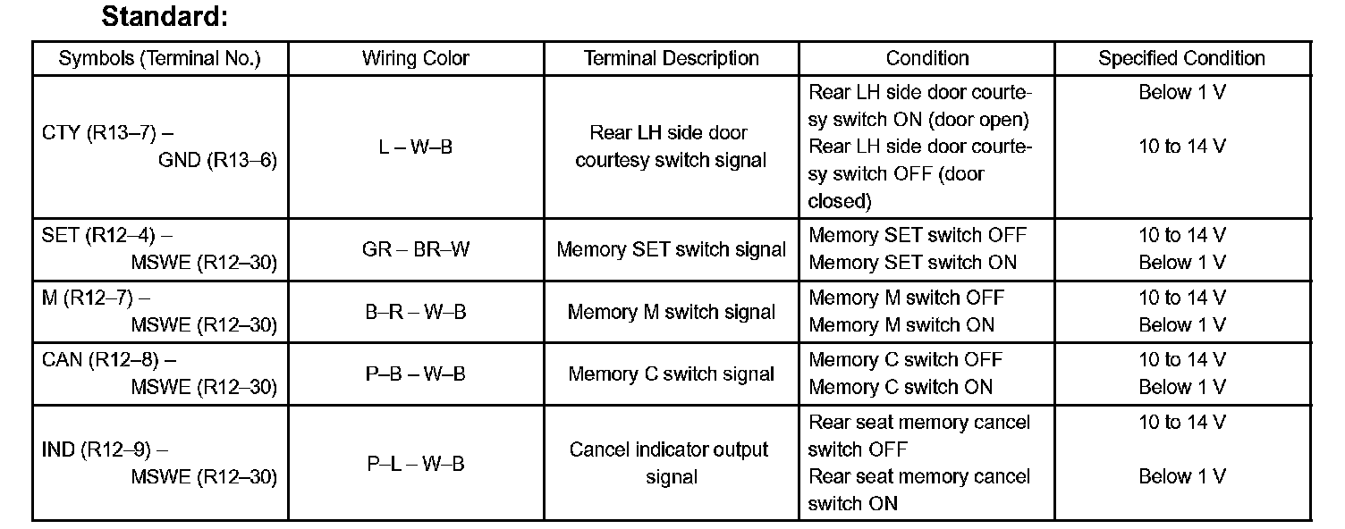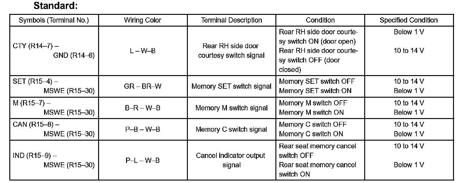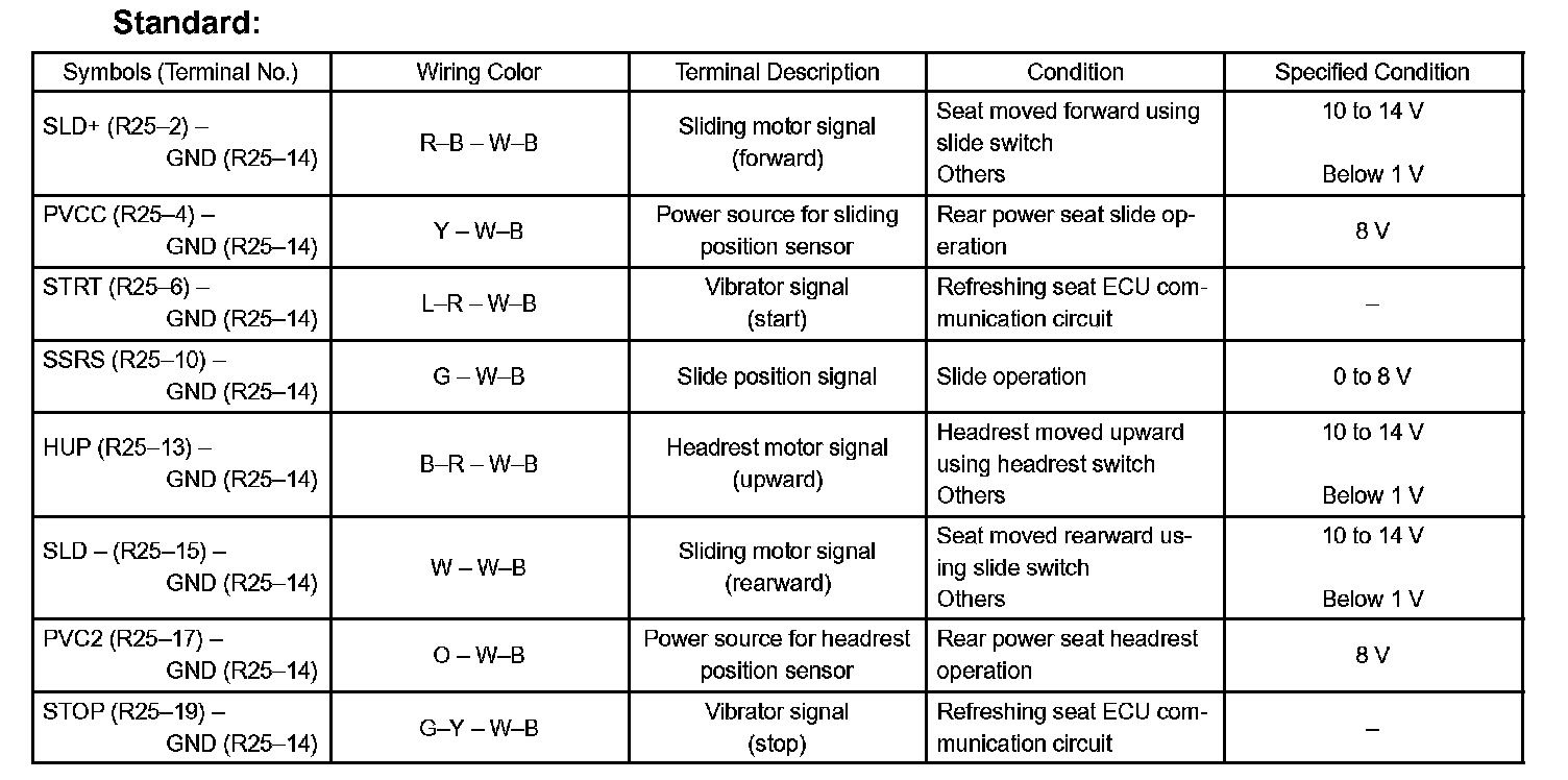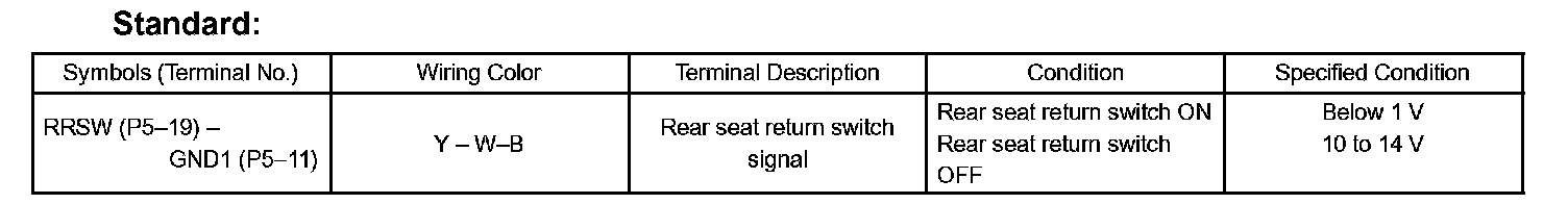 If the result is not as specified, replace the seat ECU may have a malfunction.