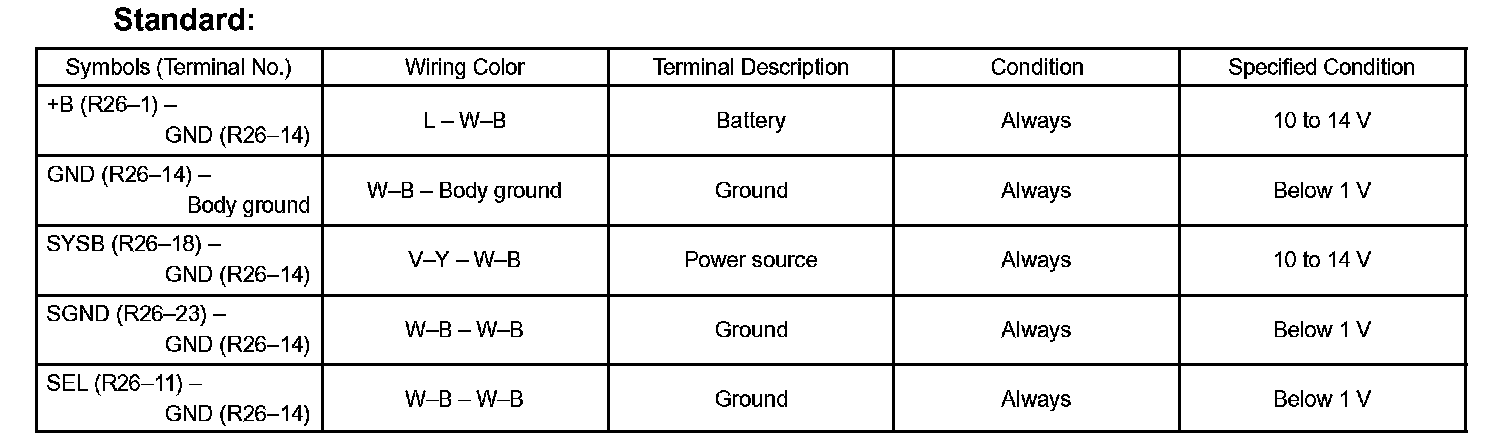 b. Measure the voltage of each terminal of the wire harness side connector.