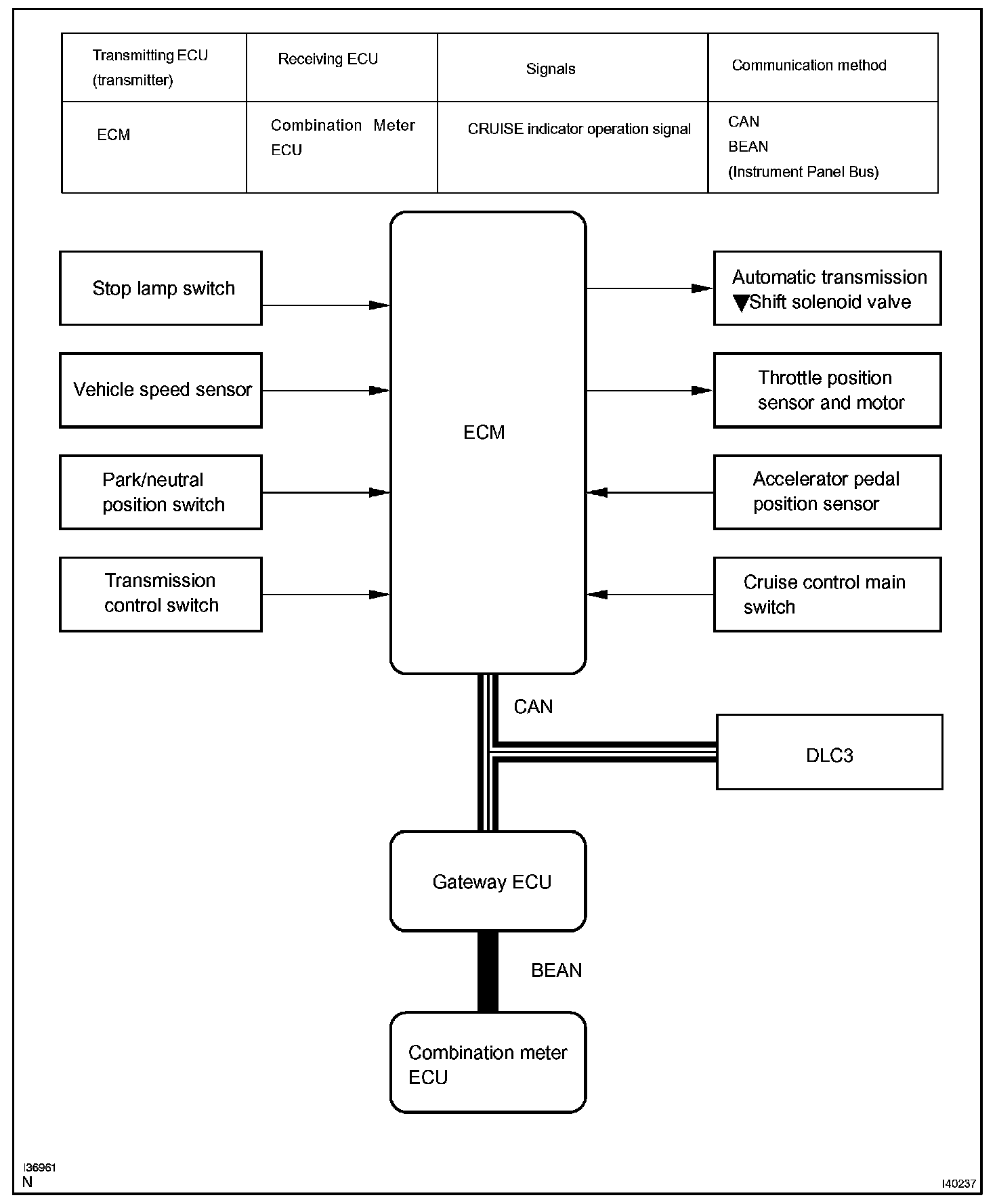 - The ECM cancels the cruise control system when it detects that the shift position is changed from D (6th, 5th or 4th gear) to N (3rd, 2nd or 1st gear), based on the park/neutral position switch assembly signal.