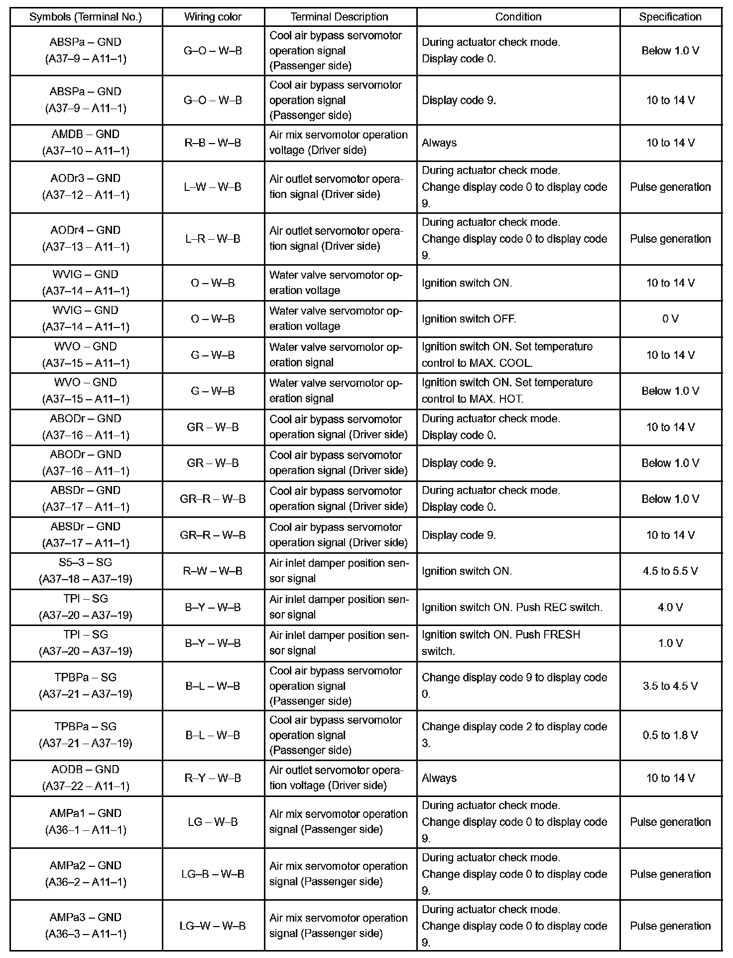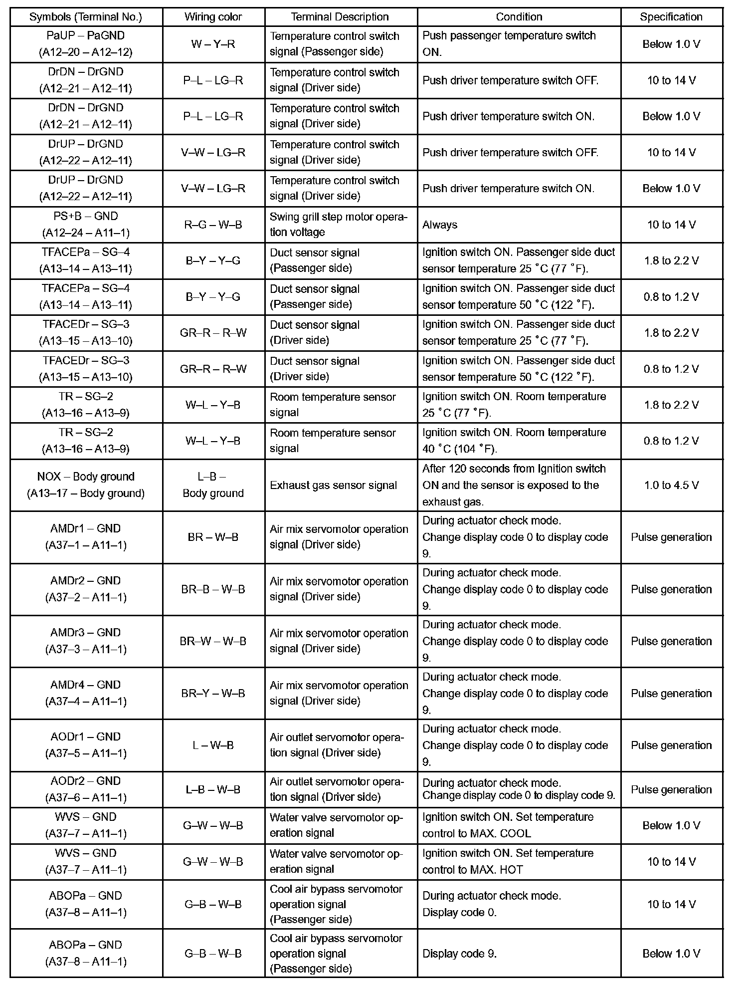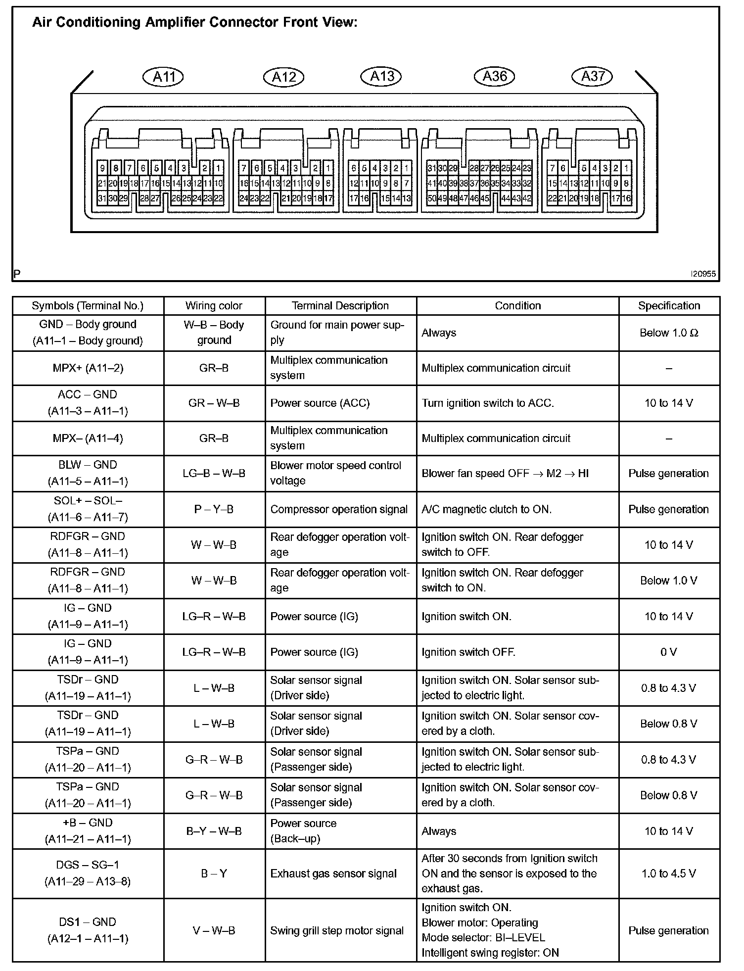 Terminals Of Control Module / Pinouts Part 1 (Air Conditioning Amplifier):