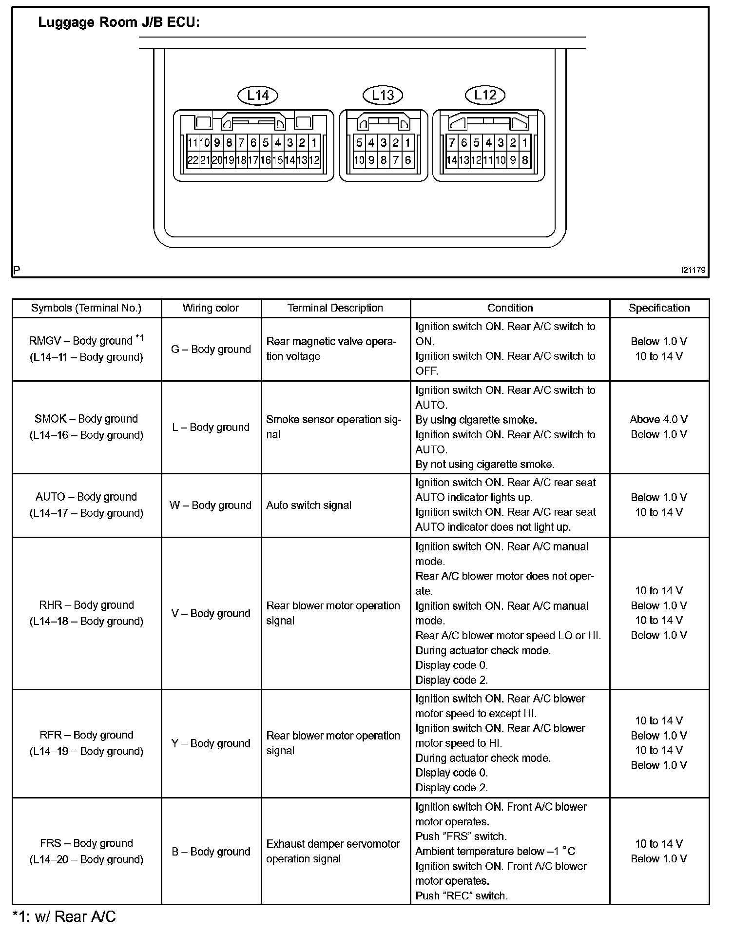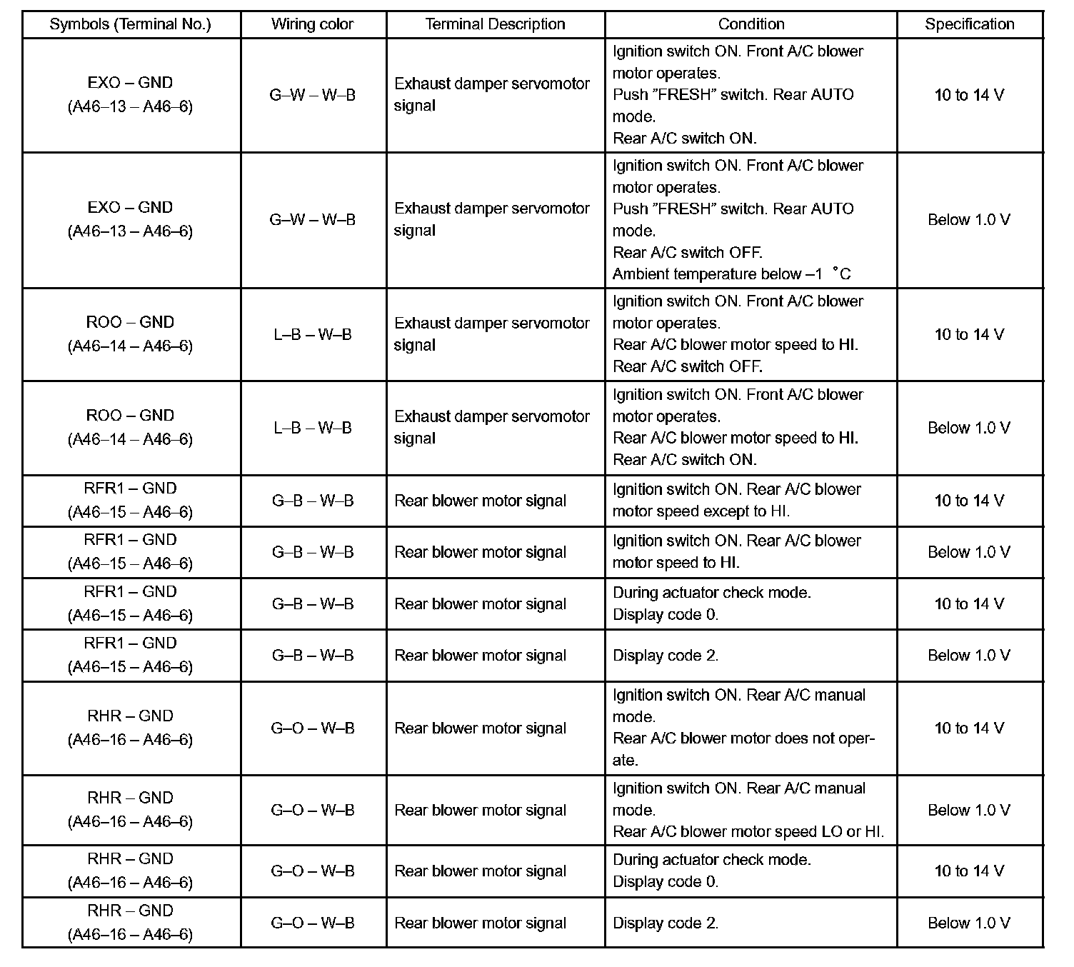 Terminals Of Control Module / Pinouts Part 1 (Rear Air Conditioning Amplifier):