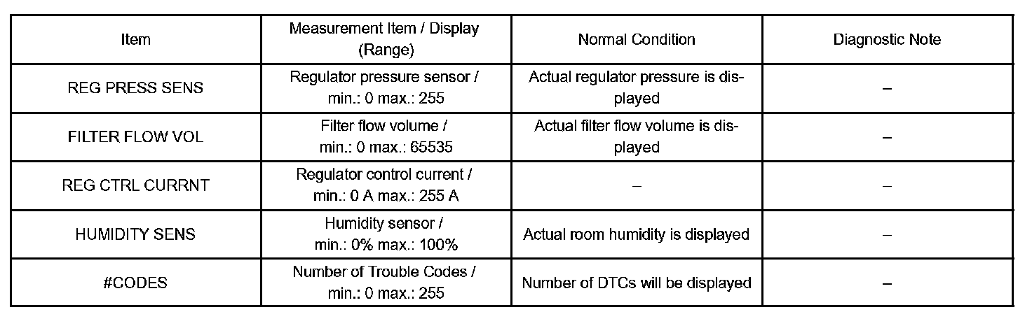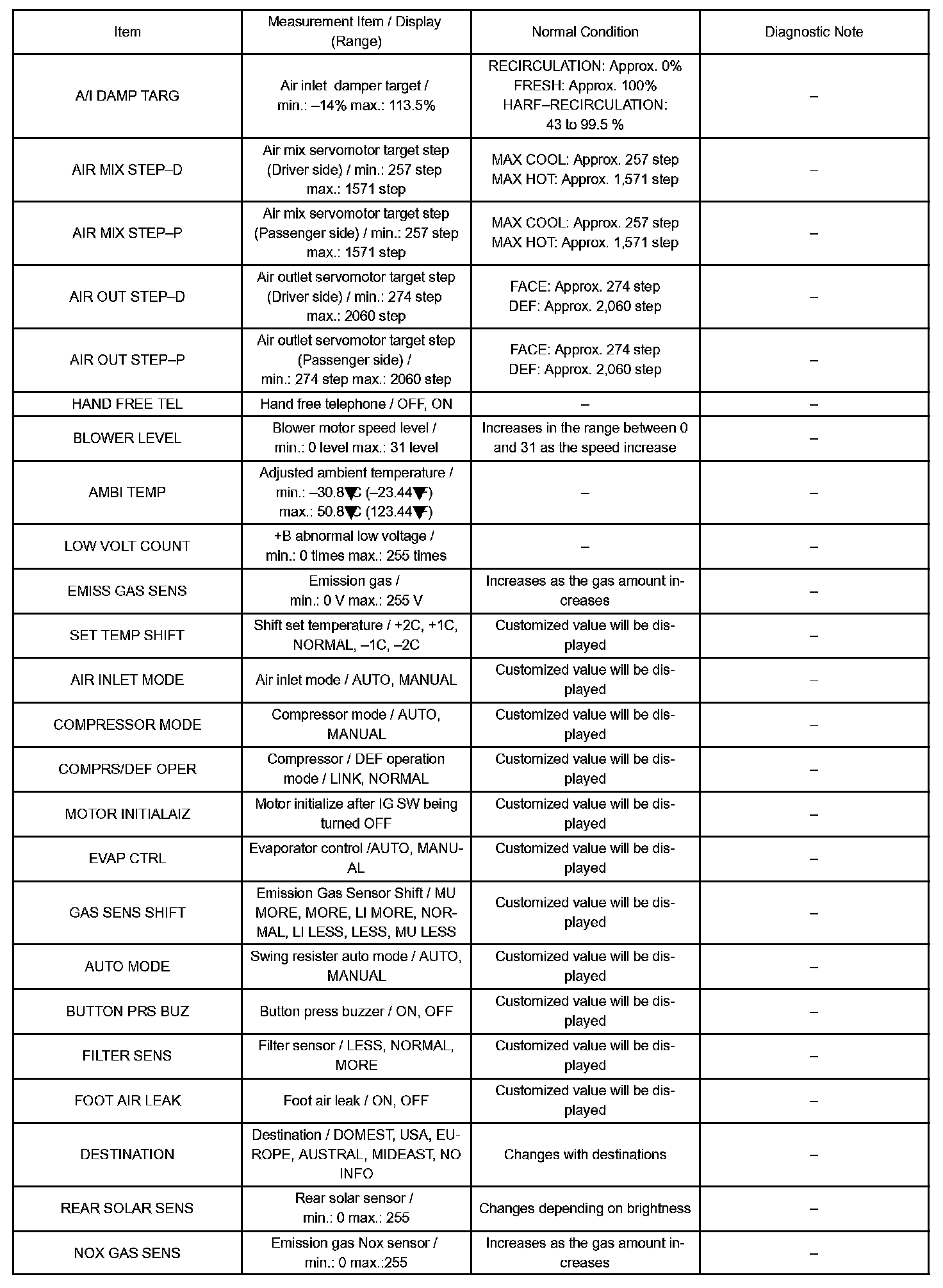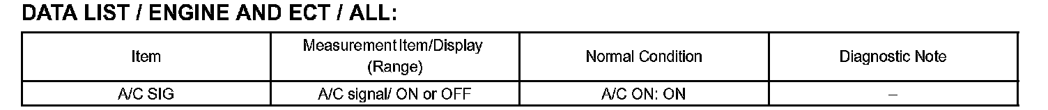 DATA LISTHINT: From the DATA LIST displayed on the hand-held tester, you can read the values of the displays, sensors, actuators and so on without parts removal. Reading the DATA LIST as the first step of troubleshooting is one way to shorten labor time.