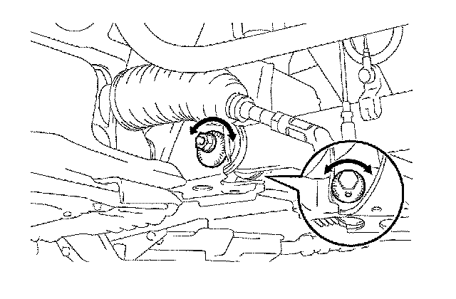 b. Remove the nut and washer from the rear of the lower No. 2 bushing.