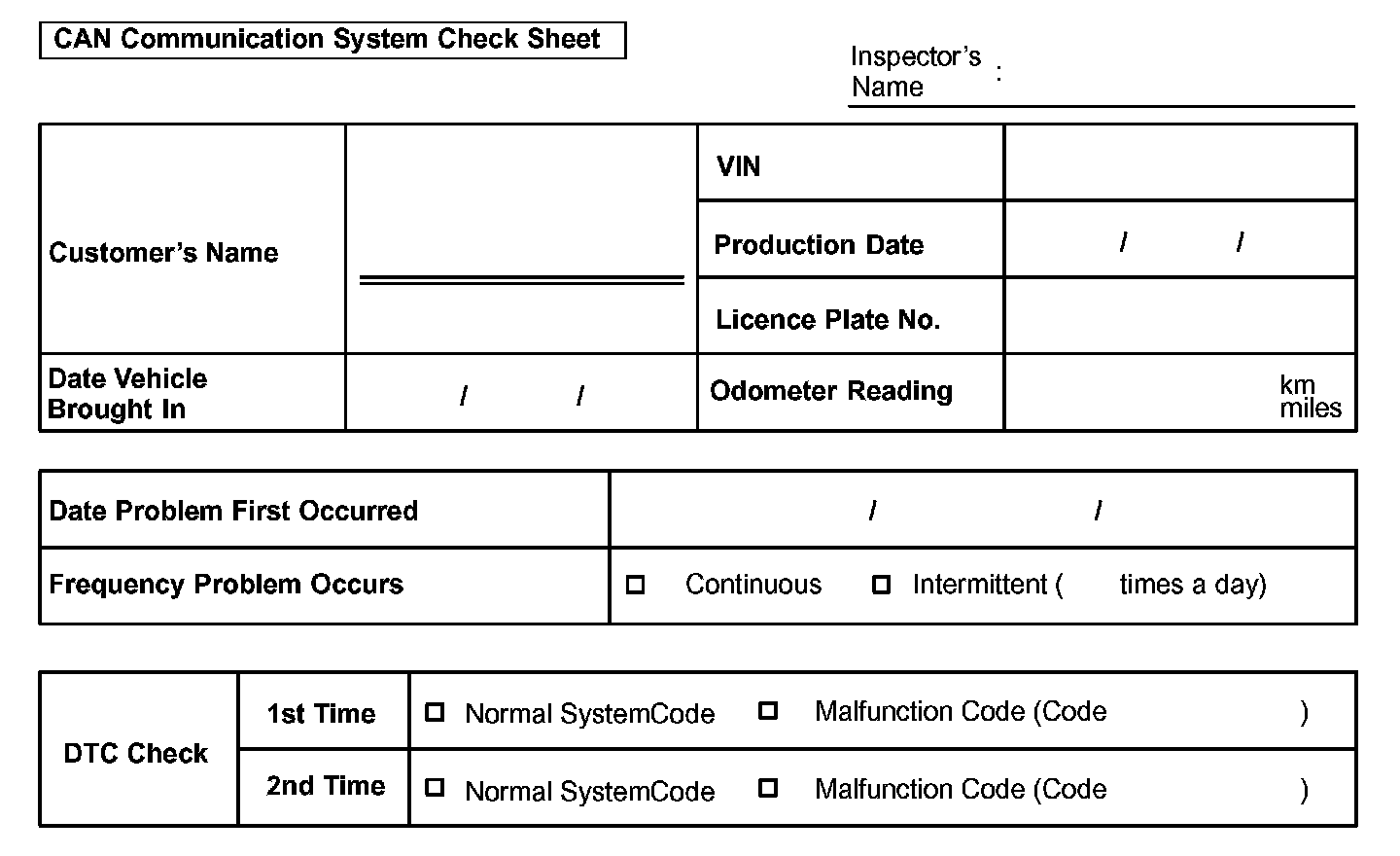 CAN Communication System Check Sheet: