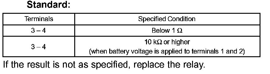 1. Apply battery voltage across terminals 1 (+B) and 2 (E2G).