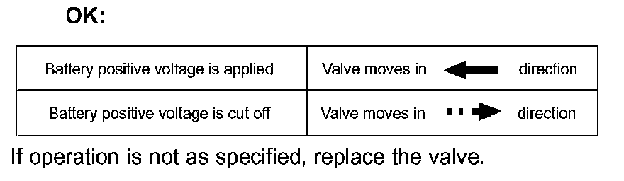 b. Connect the battery's positive (+) lead to terminal 1 and negative (-) lead to terminal 2. Check the movement of the valve.
