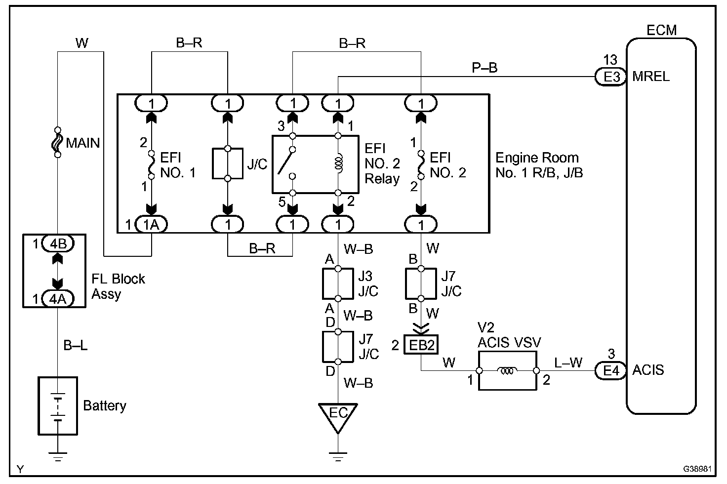 This circuit opens and closes the Intake Air Control Valve (IACV) in response to the engine load in order to increase the intake efficiency (ACIS: Acoustic Control Induction System).