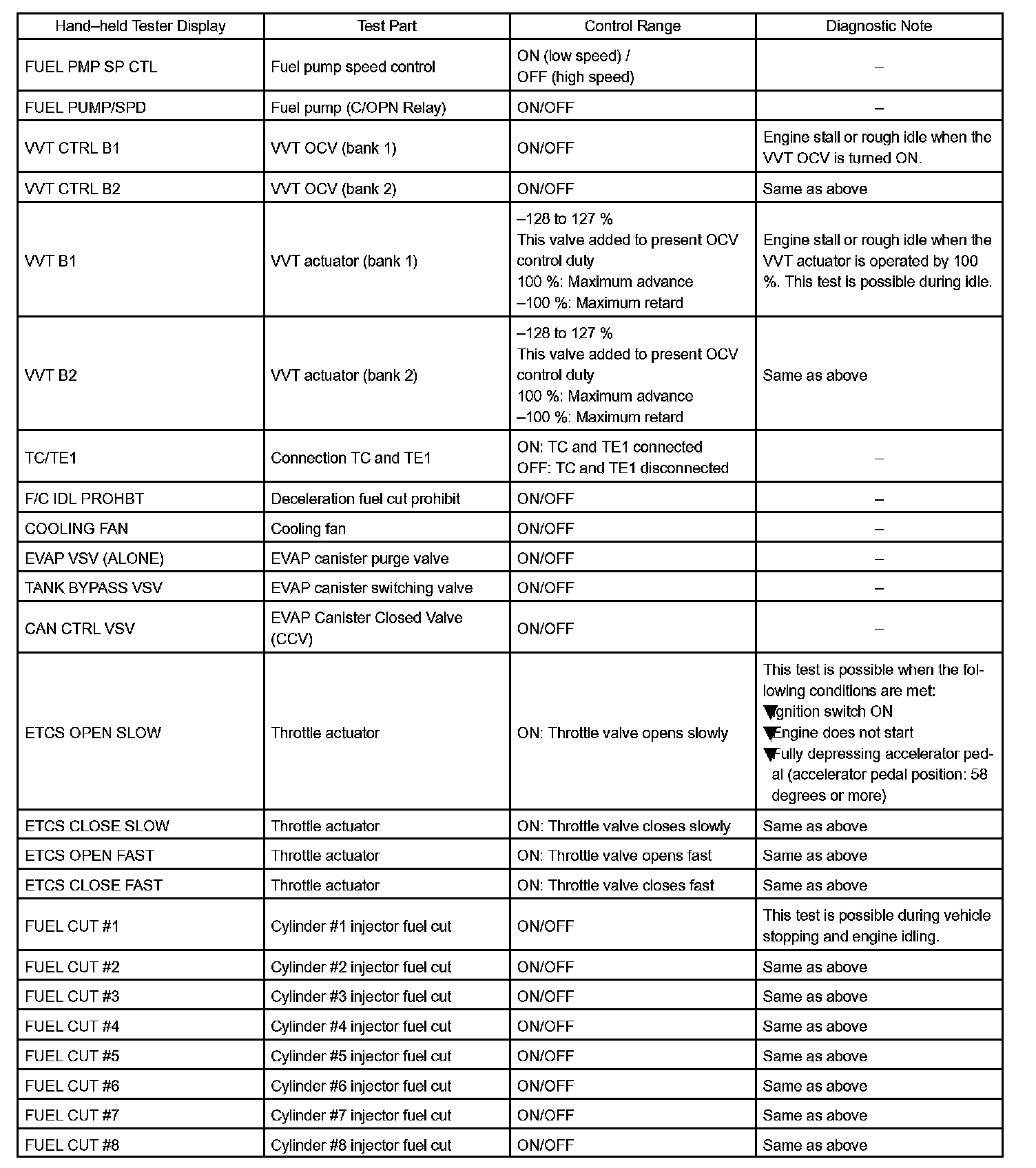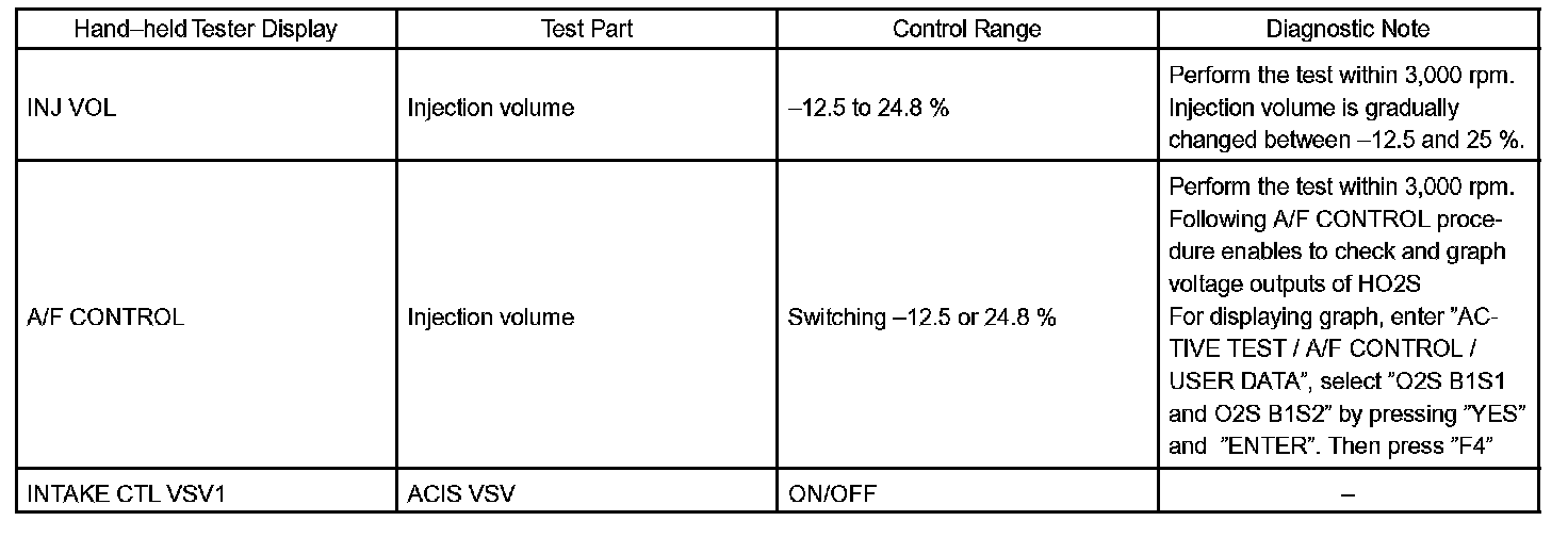 PERFORM ACTIVE TESTHINT: Performing the hand-held tester's ACTIVE TEST allows relay, Vacuum Switching Valve (VSV), actuator and other items to be operated without removing any parts. Performing the ACTIVE TEST early in troubleshooting is one way to save time. The DATA LIST can be displayed during the ACTIVE TEST.