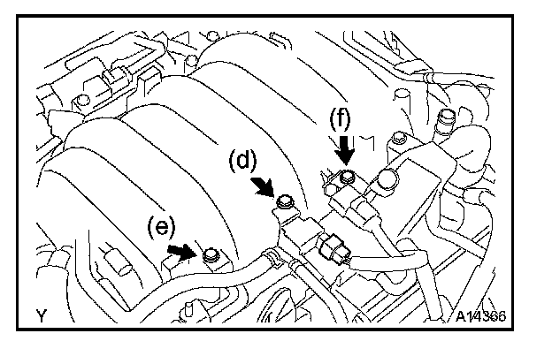 b. Install the upper and lower intake manifolds assembly with the 6 bolts and 4 nuts.