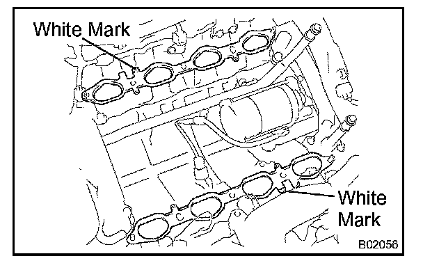 a. Place 2 new gaskets on the cylinder heads with the white mark facing outward.