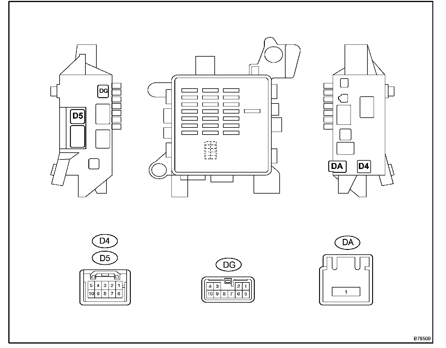 a. Disconnect the DA and DG J/B, and D5 ECU connectors.