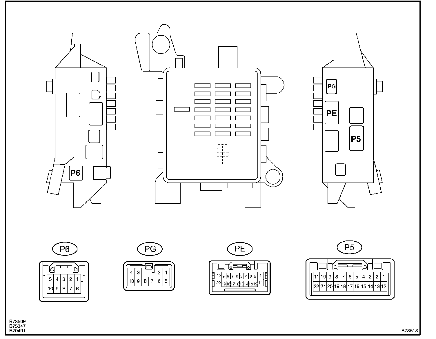 a. Disconnect the PE and PG J/B, and P5 ECU connectors.
