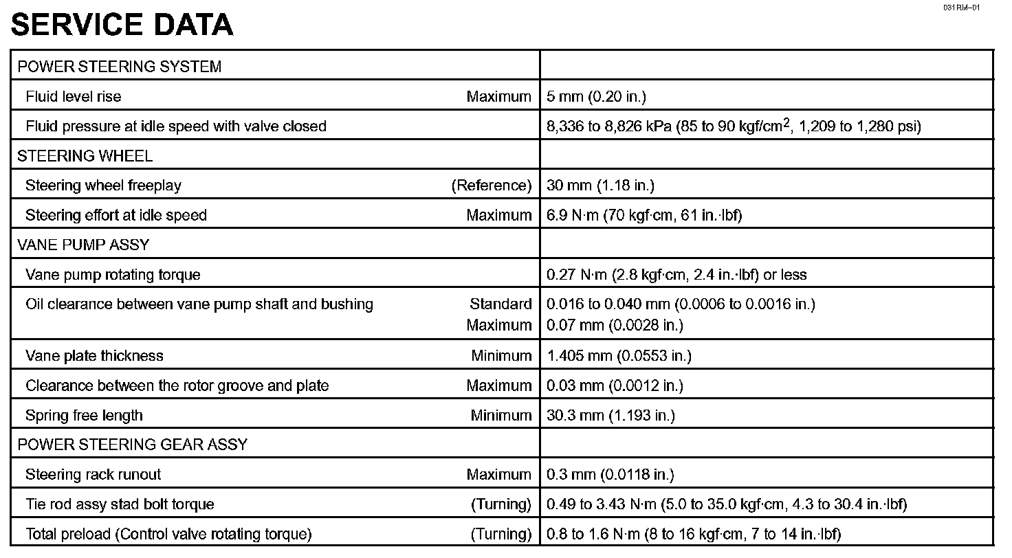 Power Steering - Service Data: