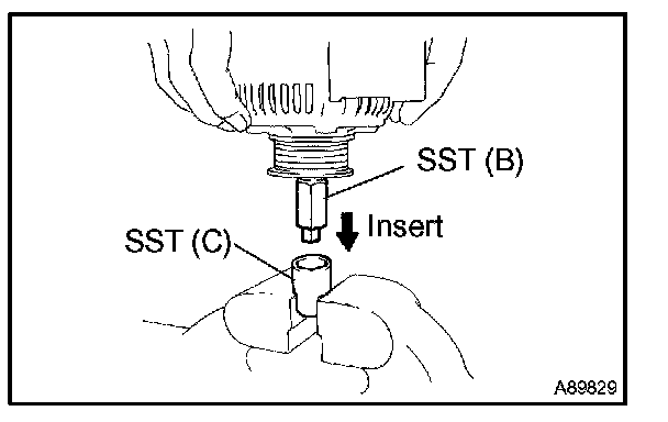 e. Insert SST (B) into SST (C), and attach the pulley nut to SST (C).