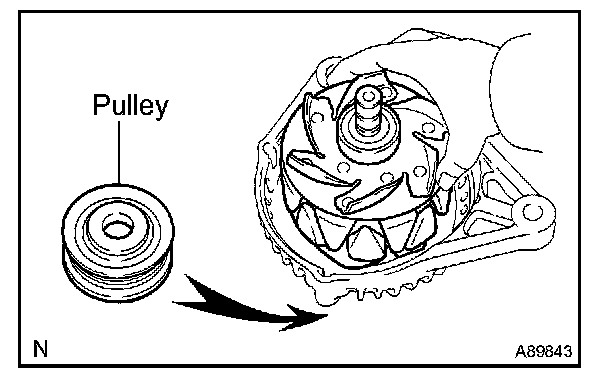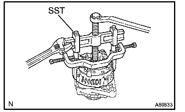 f. To tighten the pulley nut, turn SST (A) in the direction shown in the illustration.