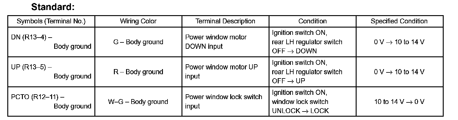 If the result is not as specified, the rear door LH ECU may have a malfunction.