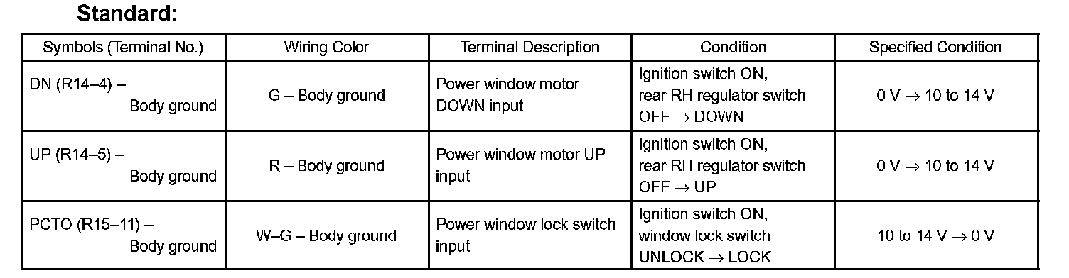 If the result is not as specified, the rear door RH ECU may have a malfunction.