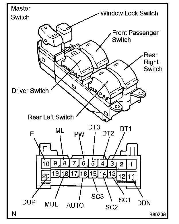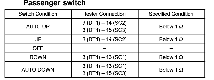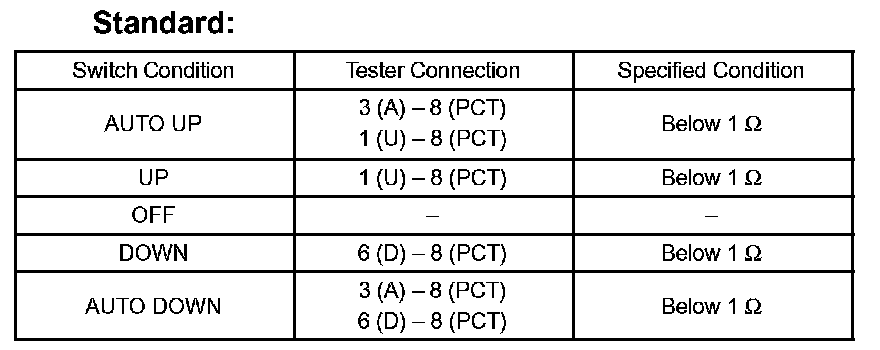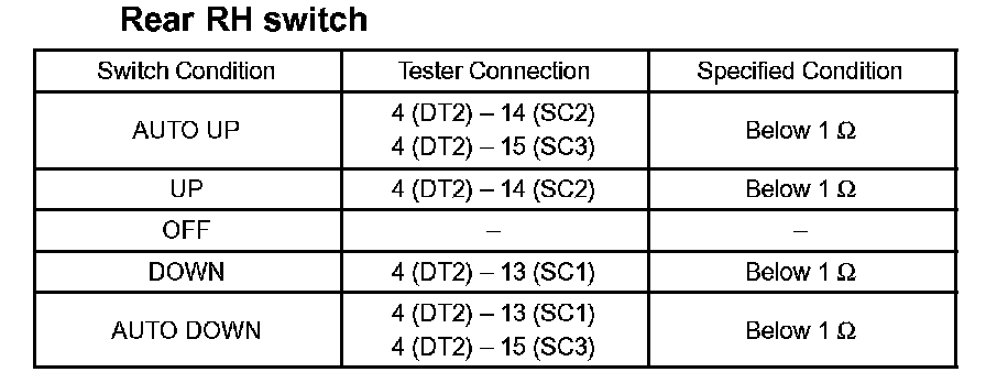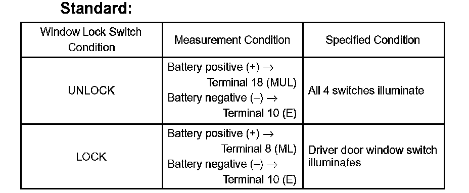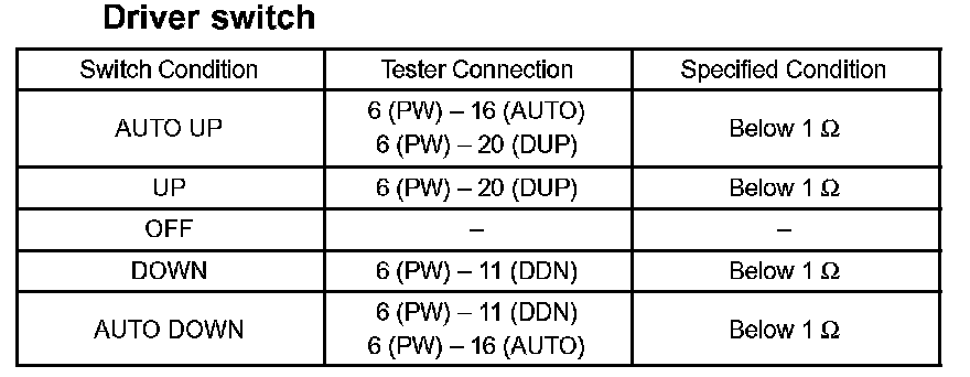 INSPECT POWER WINDOW REGULATOR SWITCH ASSEMBLY