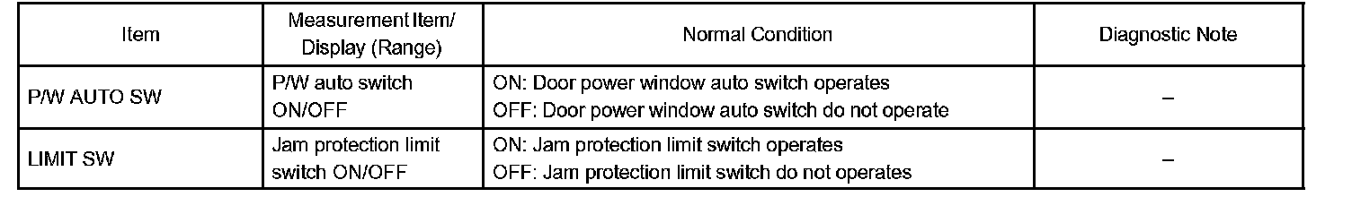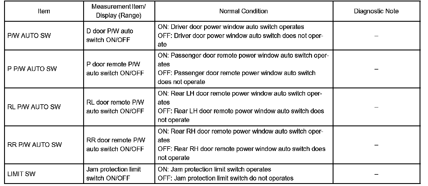 Door ECU (Passenger, Rear LH, Rear RH): (Switch condition)