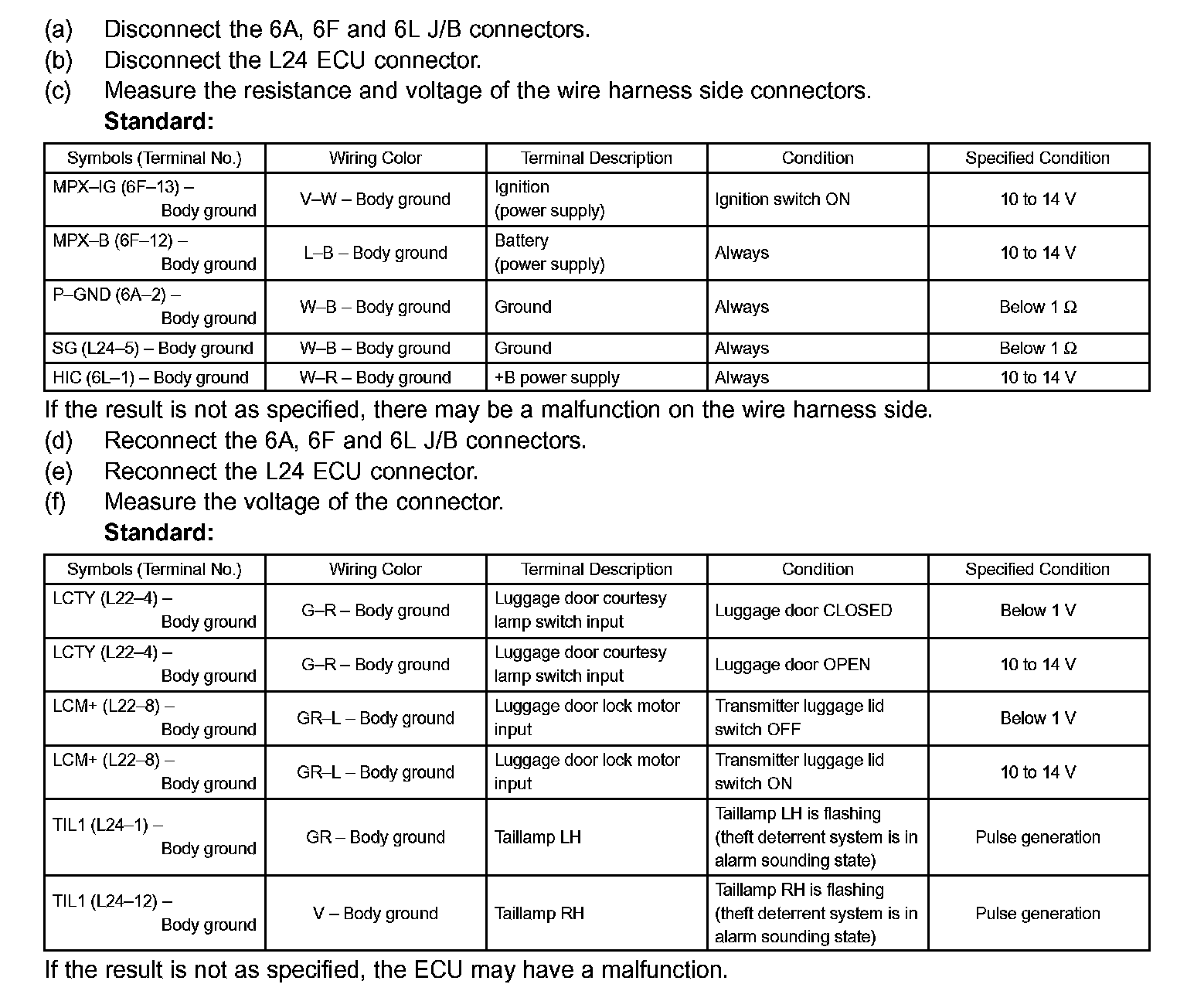 Terminals Of Control Module/Pinouts - Check Luggage Room J/B Assy (Luggage Room J/B ECU) Part 2: