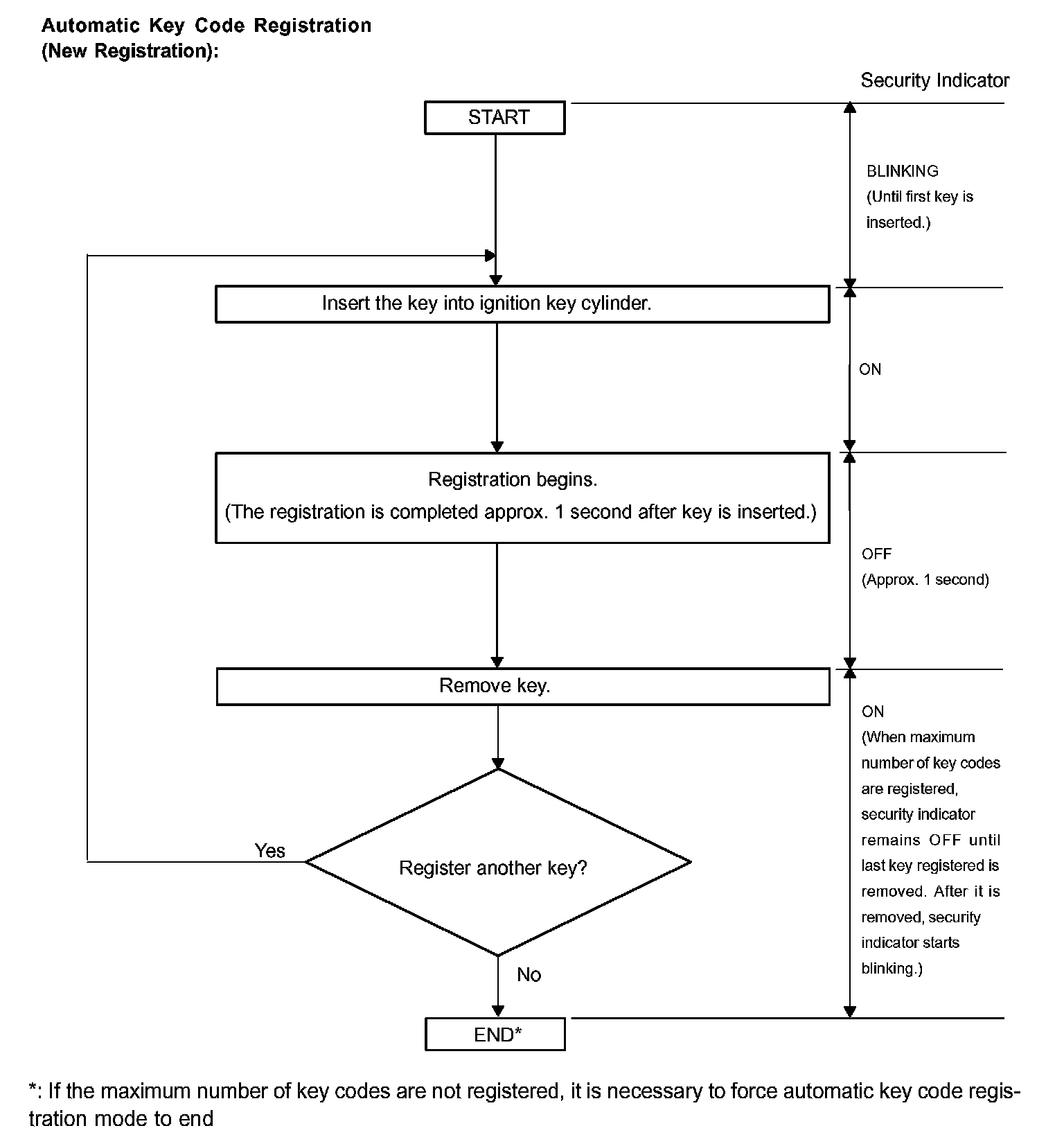REGISTRATIONHINT: The key has 2 codes: a key code (immobilizer code.and a wireless code. Both code types need to be registered. Refer to wireless door lock control system for the wireless code registration procedures.