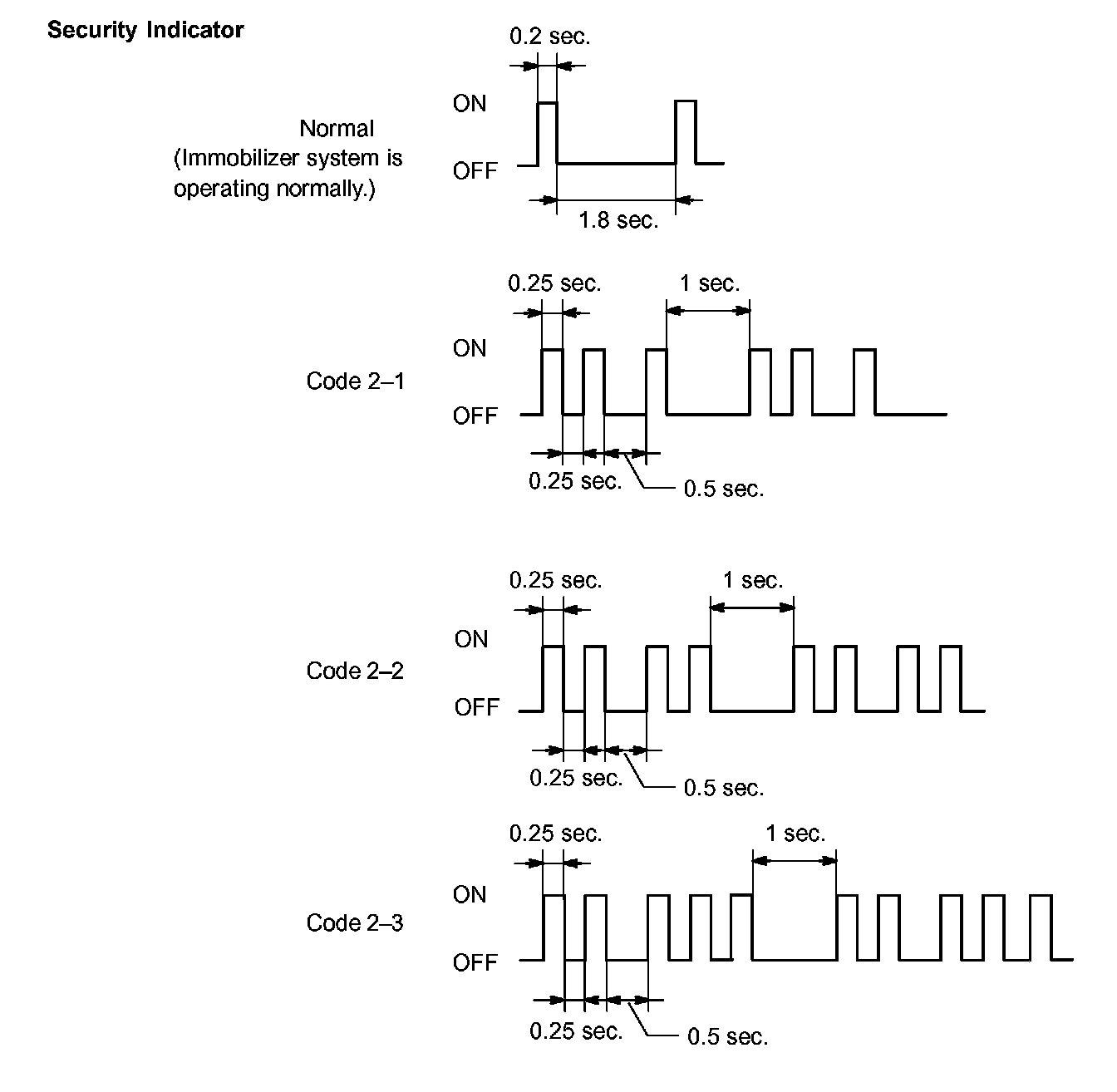 - When the immobilizer system is operating normally and the key is pulled out, the security indicator blinks continuously.