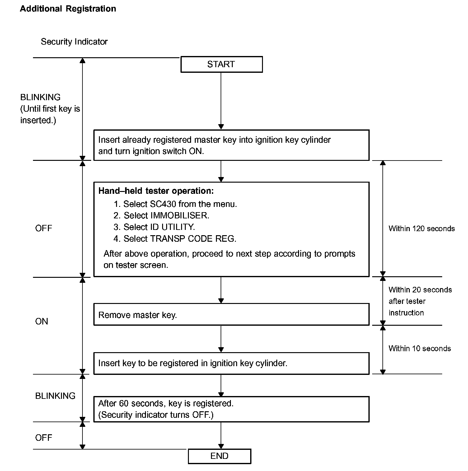 1. Turn the ignition switch ON and OFF 5 times within 10 seconds using the already registered master key.