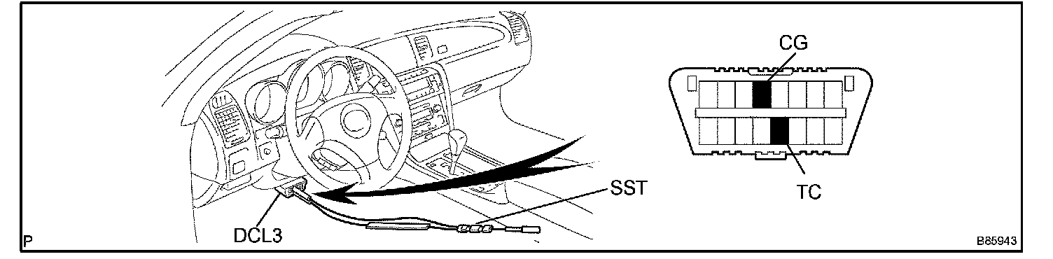 1. Using SST, connect terminals TC and CG of the DLC3.