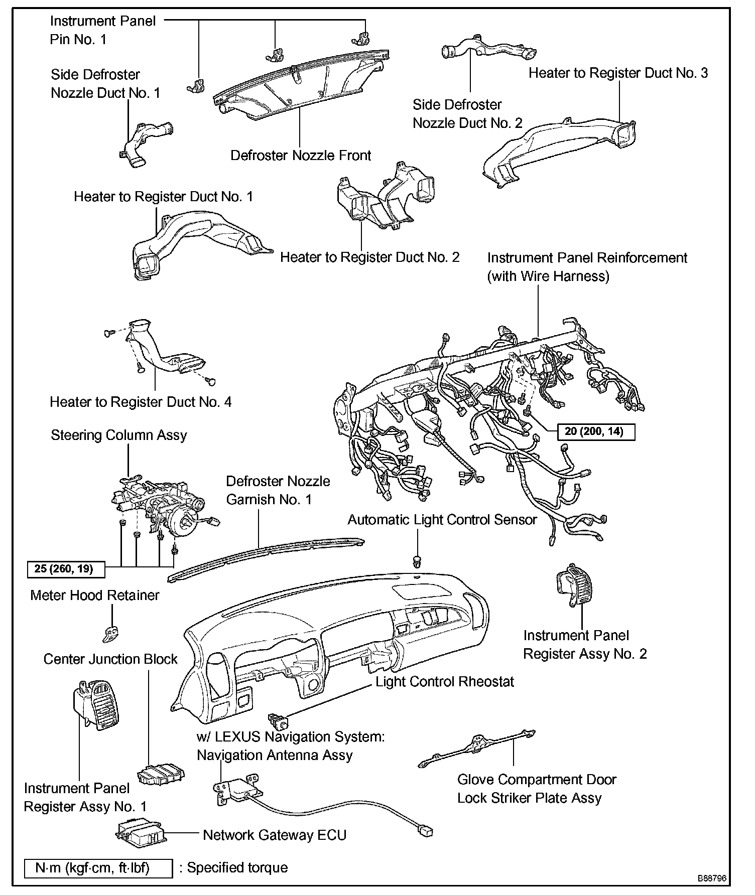 14. REMOVE INSTRUMENT PANEL SAFETY PAD SUB-ASSEMBLY NO.1
