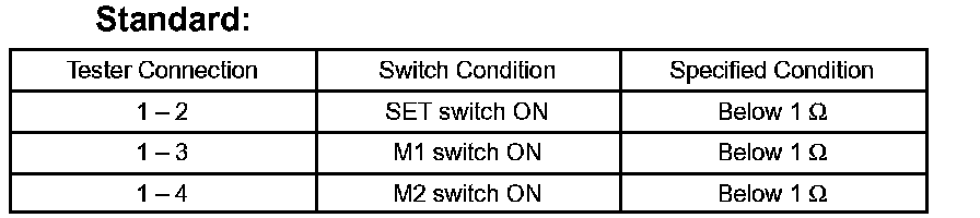 If the result is not as specified, replace the memory switch.