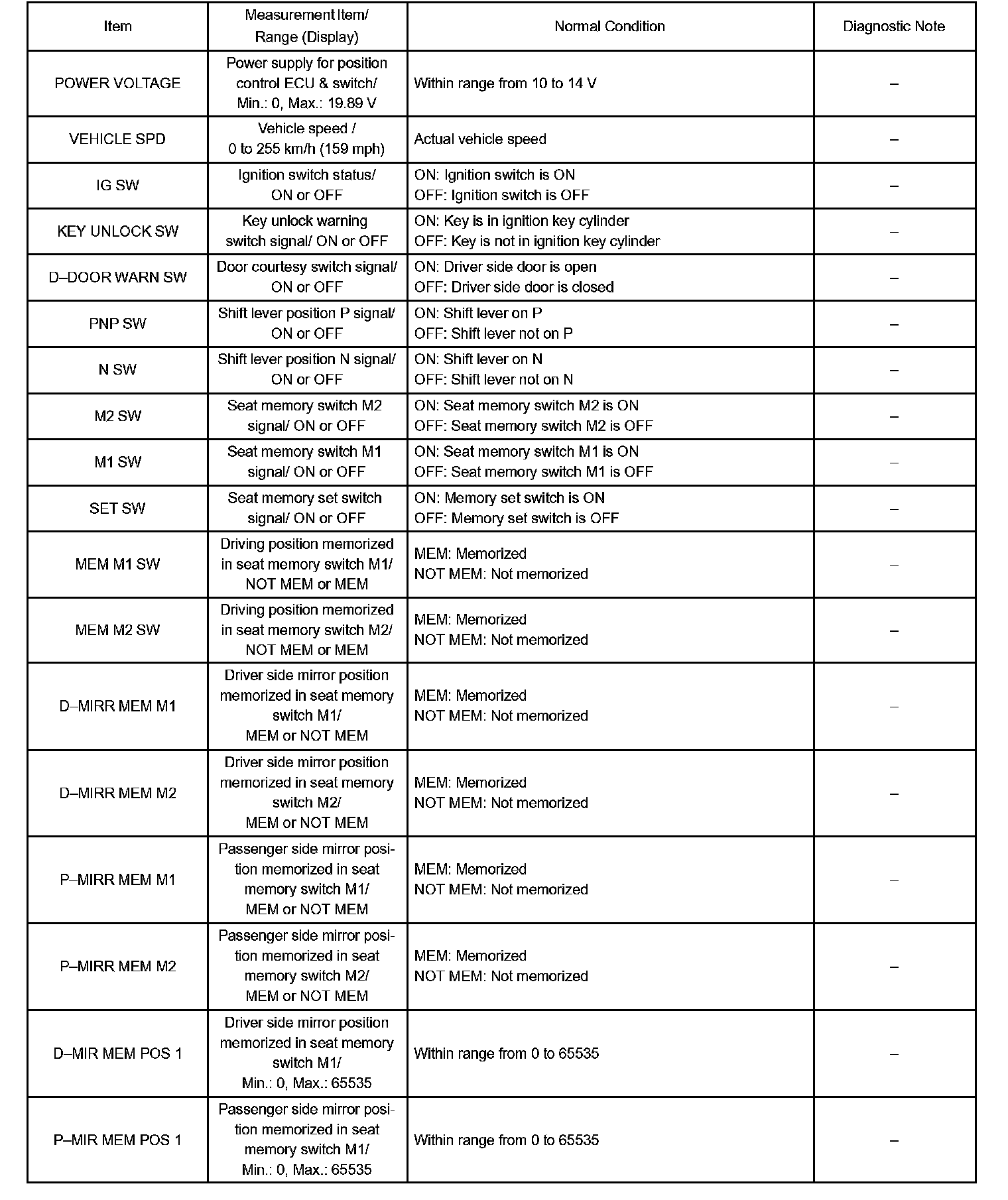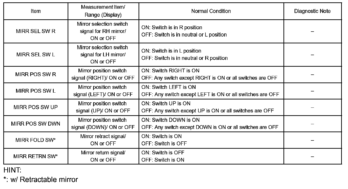 DATA LISTHINT: Using the hand-held tester's DATA LIST allows switch, sensor, actuator and other item values to be read without removing any parts. Reading the DATA LIST early in troubleshooting is one way to save time.