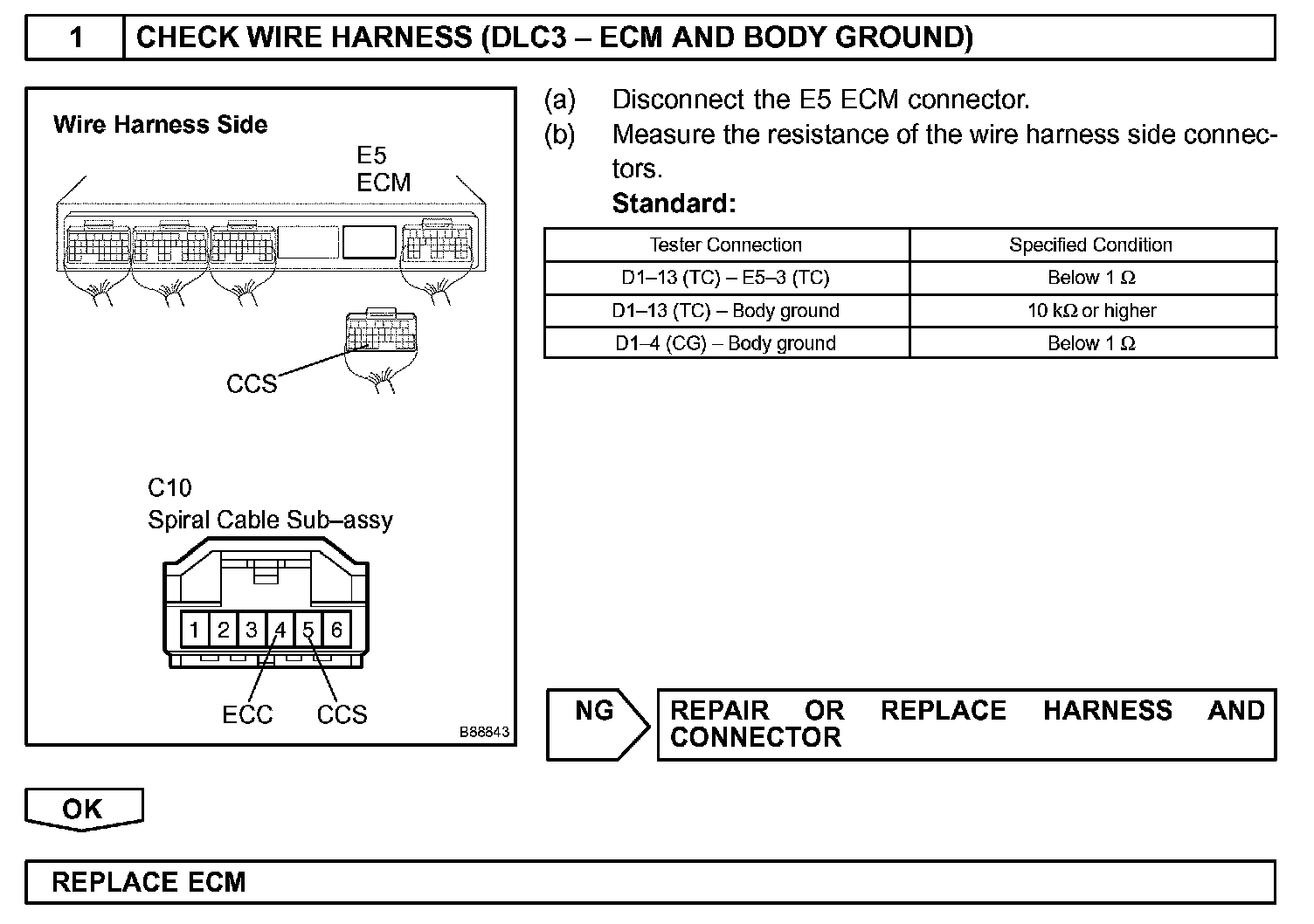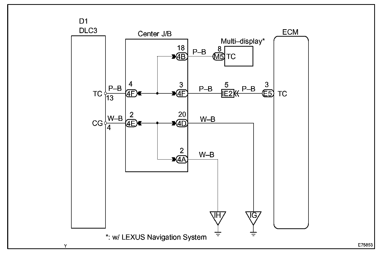 HINT: When a warning lamp of the combination meter stays blinking, terminal TC of the DLC3 or an ECU may have a ground short.