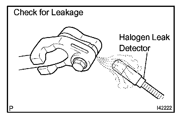2. Using a halogen leak detector, check that gas is not leaking from the refrigerant line.