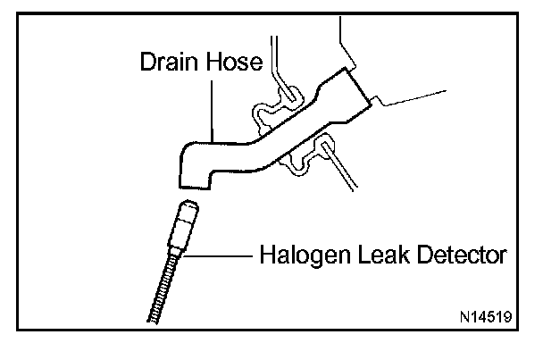 1. Hold the halogen leak detector so that the sensor is under the drain hose, as shown in the illustration.