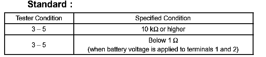 If the result is not as specified, replace the relay.