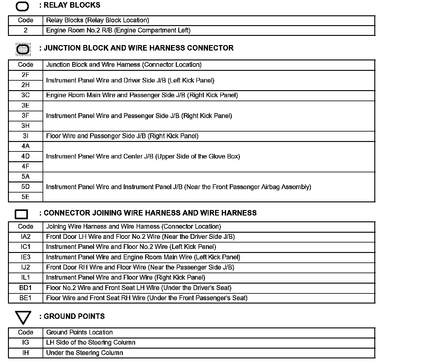 Locations: The locations of components, connectors, ground points, and splices referred to within these diagrams can be found at Vehicle Locations. Locations