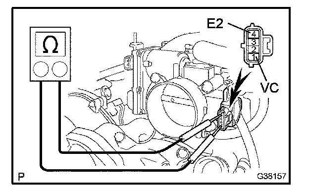 b. Measure the resistance between terminals 1 (VC) and 4(E2).