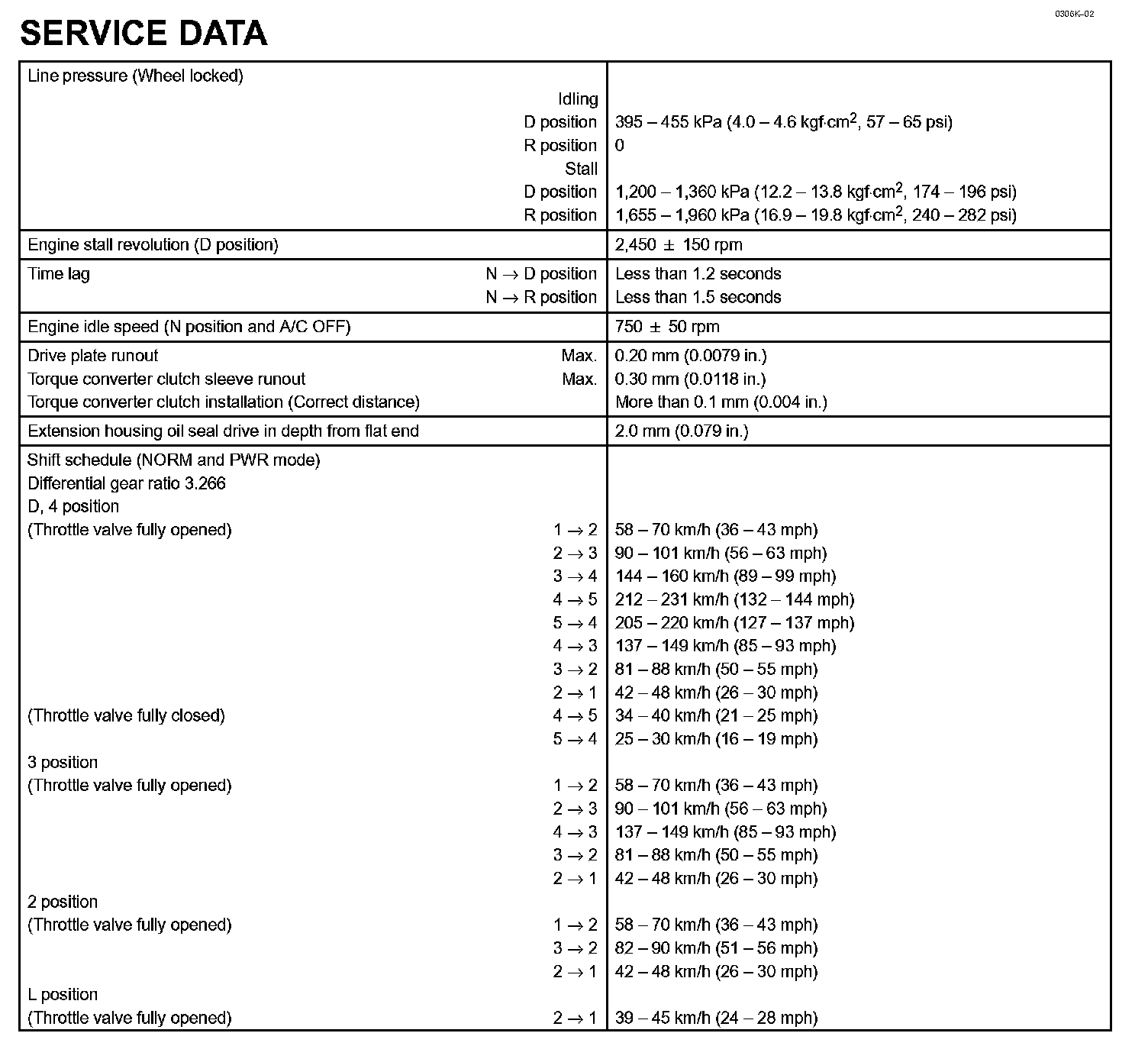 Automatic Transmission / Transaxle - Service Data Part 2: