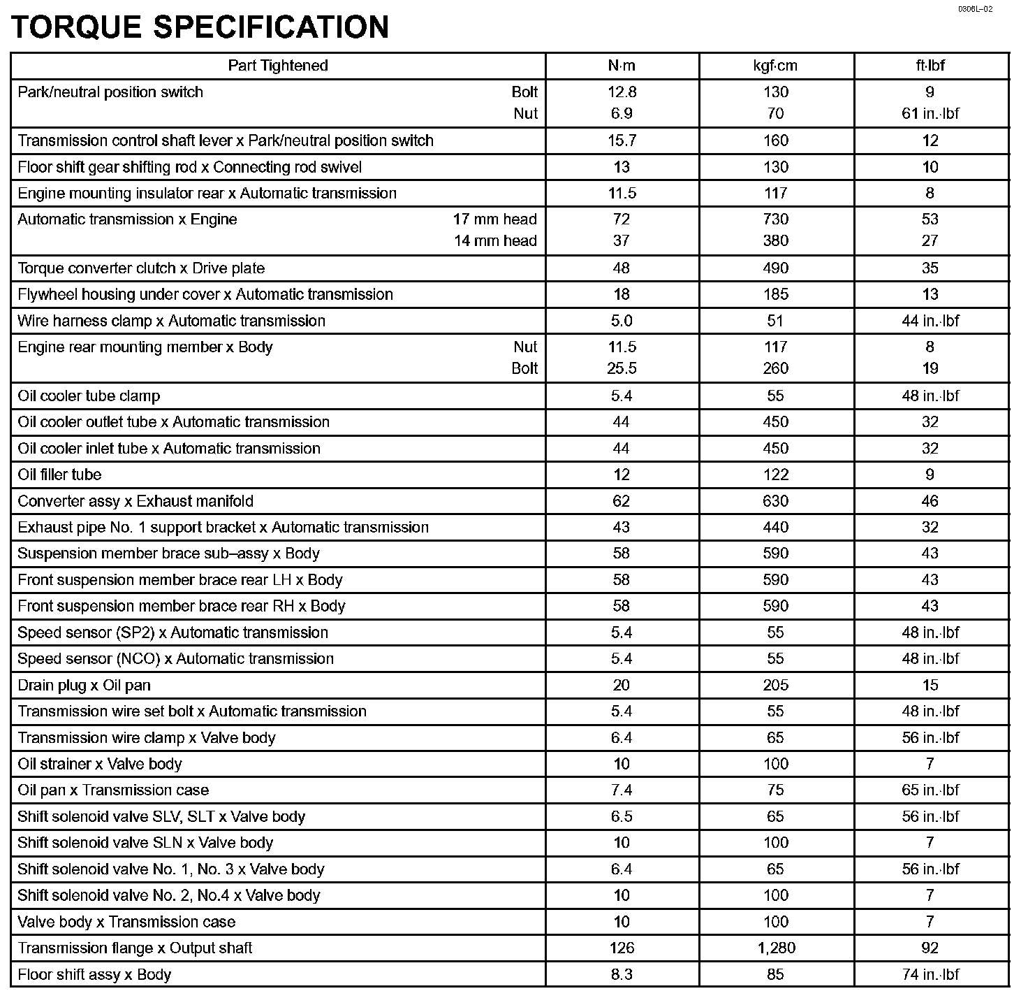 Automatic Transmission / Transaxle - Torque Specification: