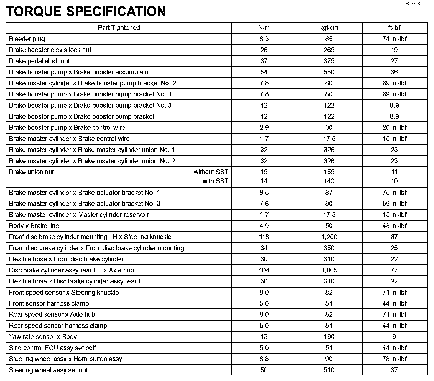 Brake - Torque Specification: