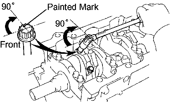 Retighten the cap bolts 90° as shown in the illustration.