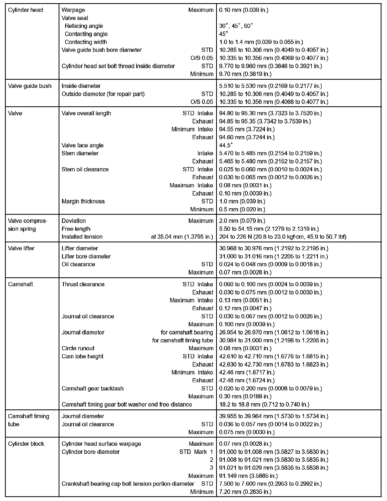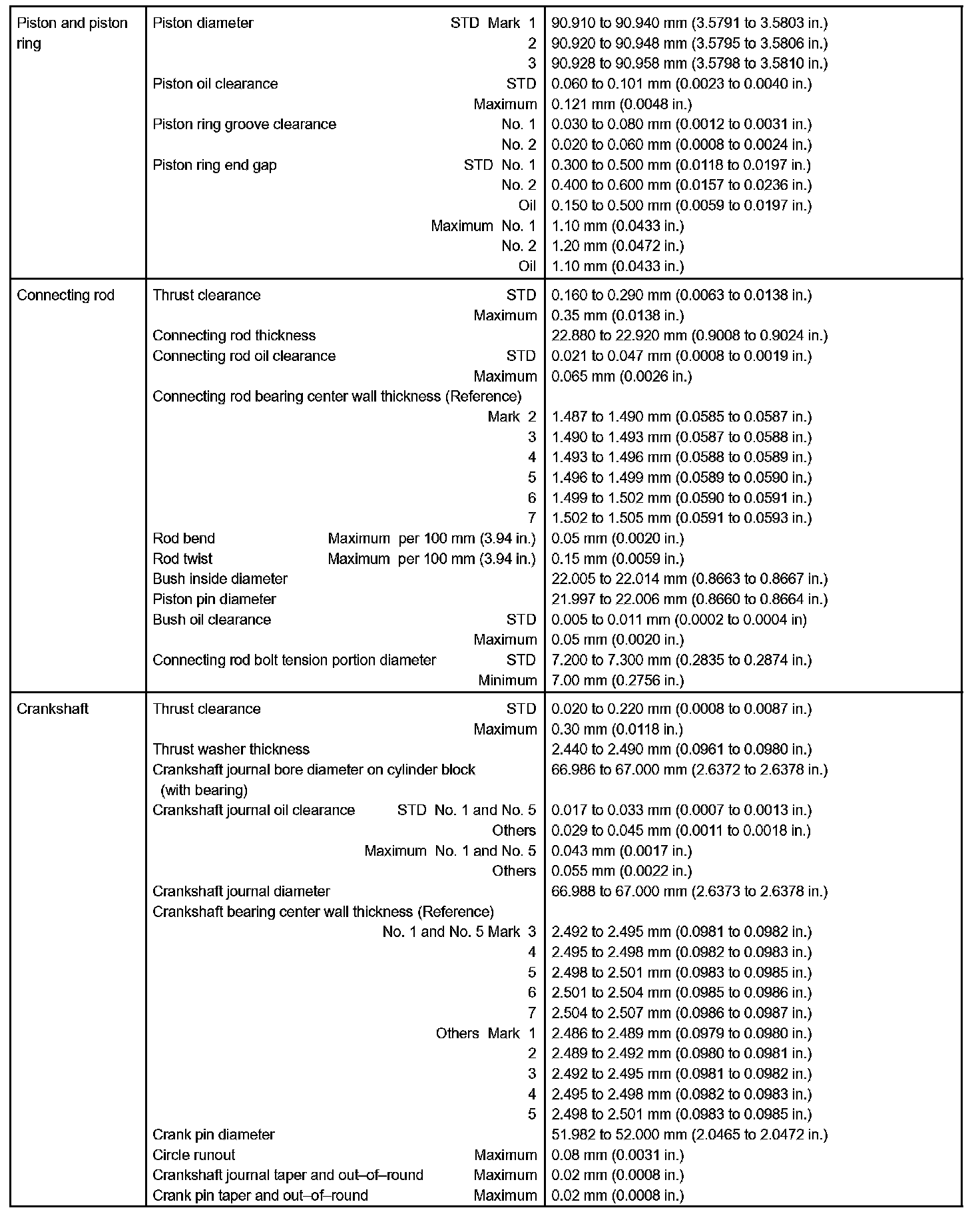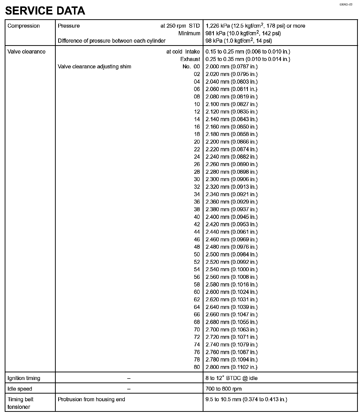 Engine Mechanical - Service Data Part 2: