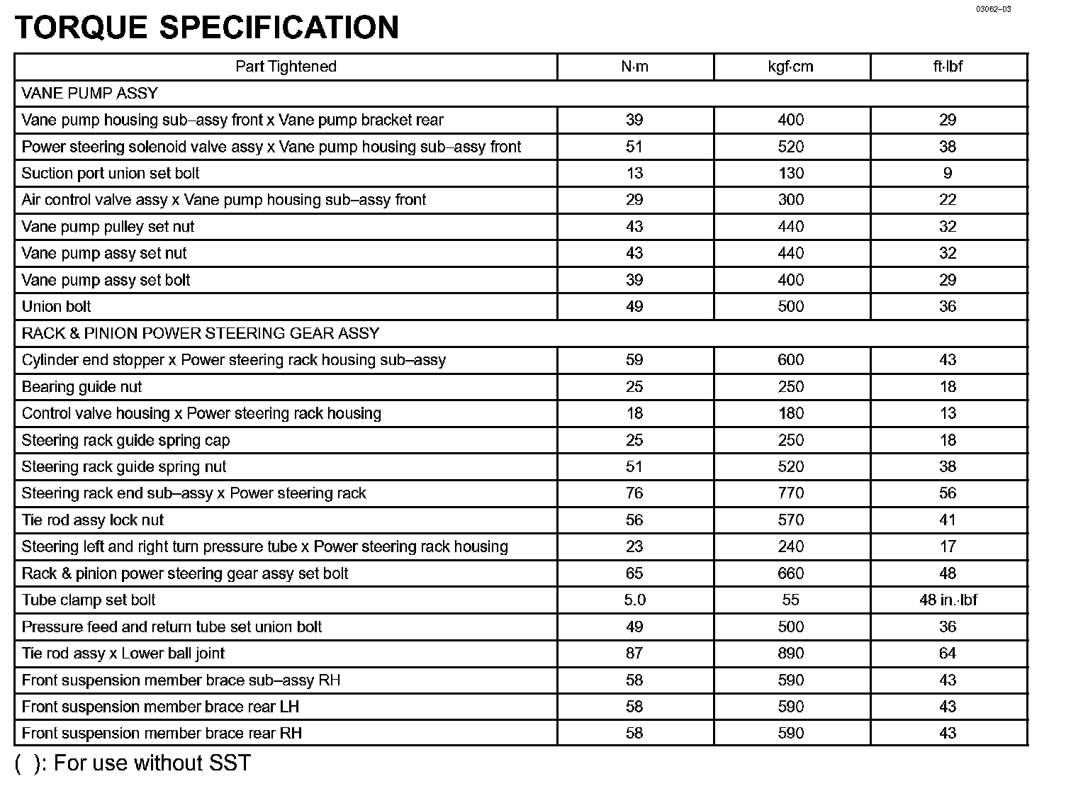 Power Steering - Torque Specification: