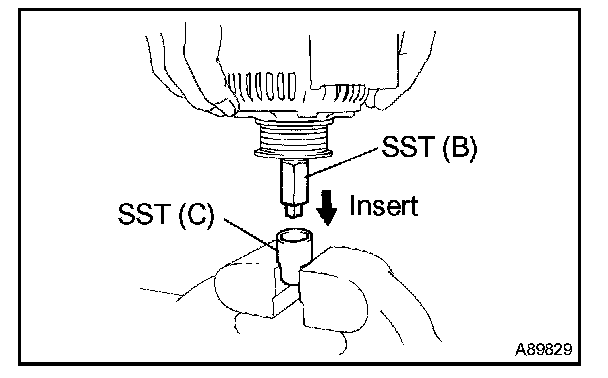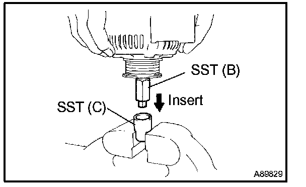 e. Insert SST (B) into SST (C), and attach the pulley nut to SST (C).