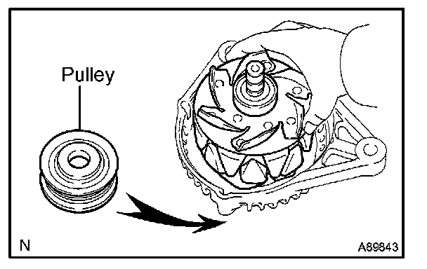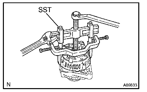 f. To tighten the pulley nut, turn SST (A) in the direction shown in the illustration.