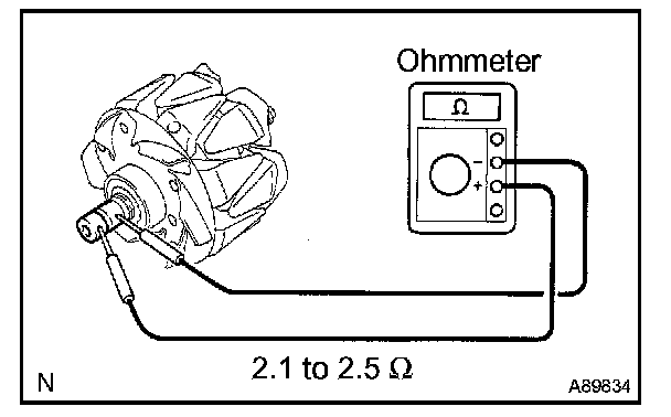 1. Using an ohmmeter, measure the resistance between the slip rings.