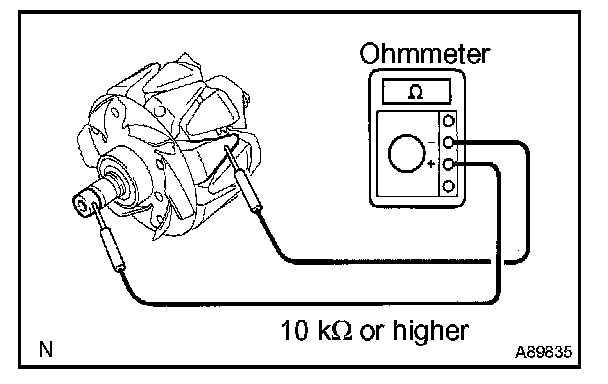 1. Using an ohmmeter, measure the resistance between the slip ring and rotor core.