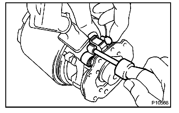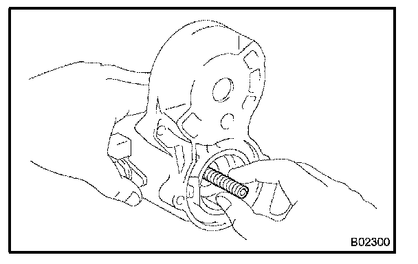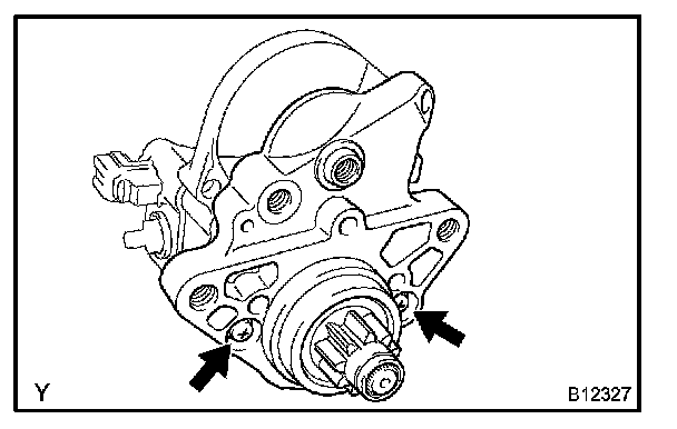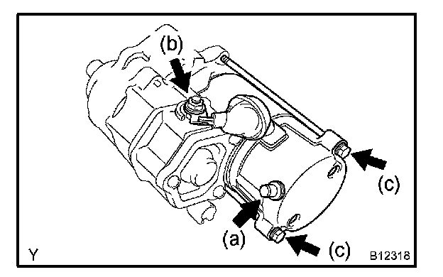 c. Remove the 2 bolts, and pull out the starter yoke (with armature)from the magnetic switch.