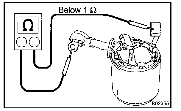 1. Using an ohmmeter, measure the resistance between the lead wire and both brushes.