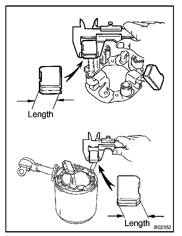 If the length is less than the minimum, replace the brush holder assembly and starter yoke assembly.